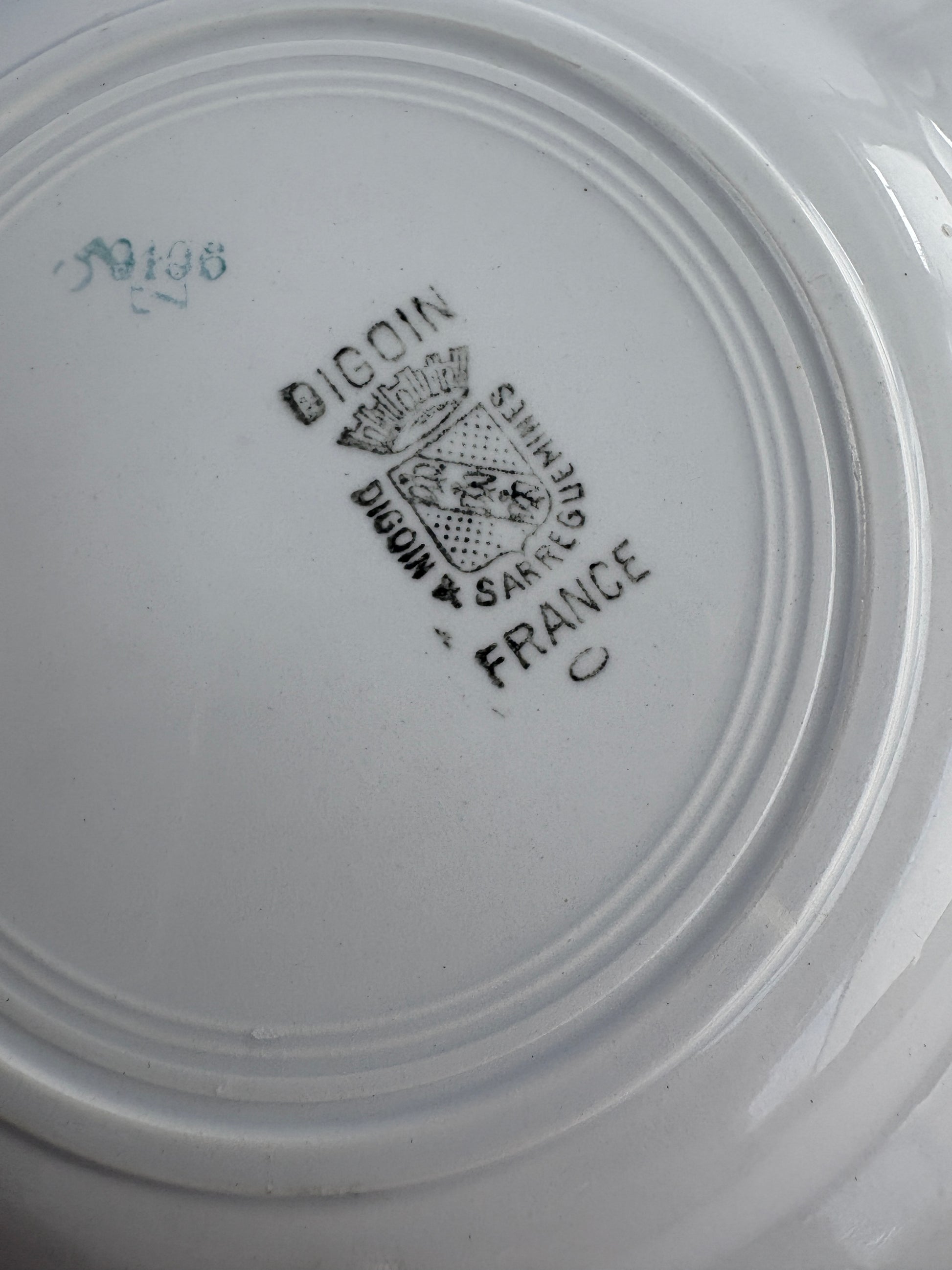 A set of 11 petit French plates by Digoin & Sarreguemines, decorated with pink roses and a golden rim. Perfect for serving gâteau or any sweet treat. /just imagine how cute your table looks with these at your next birthday or brunch.