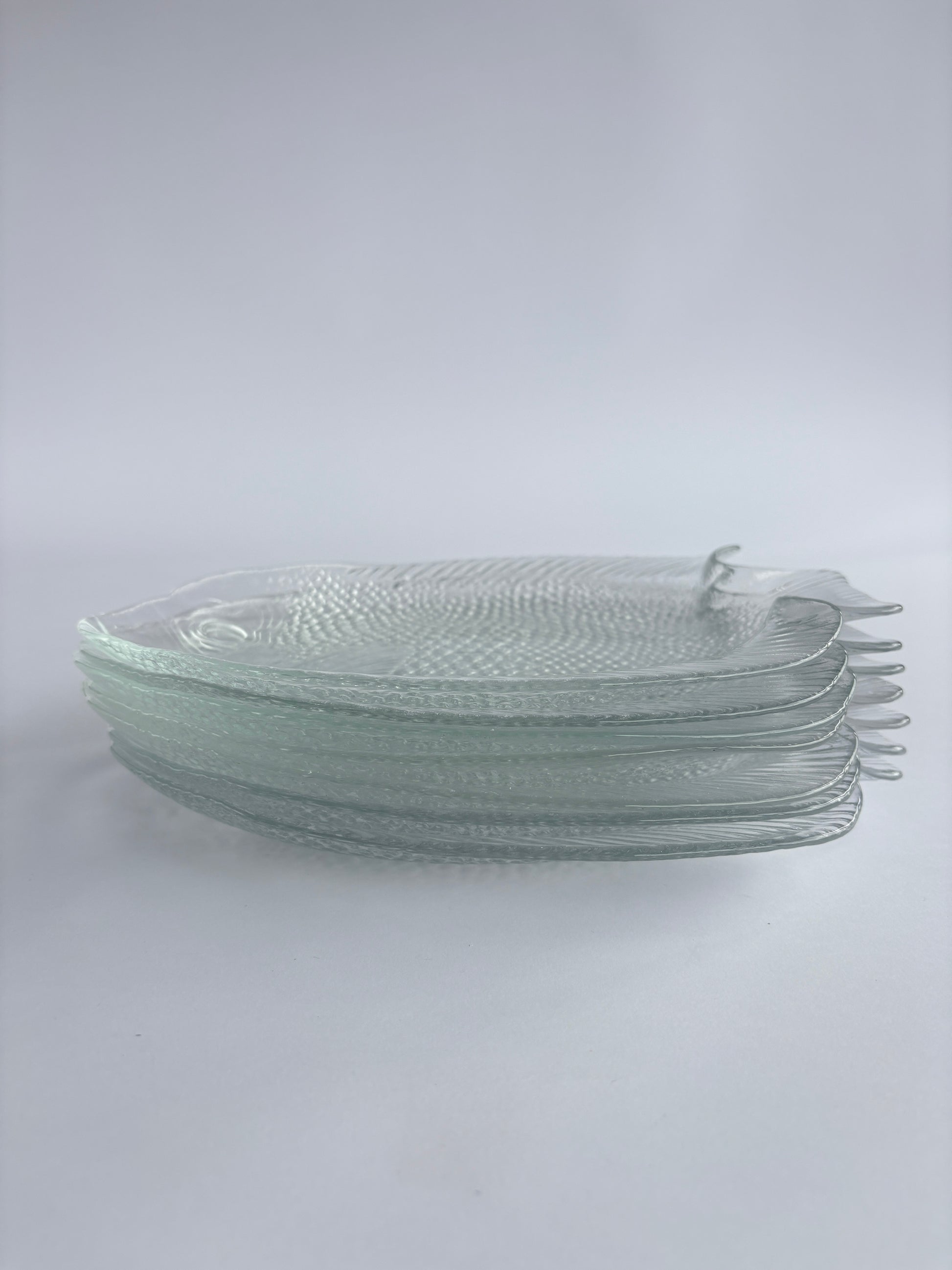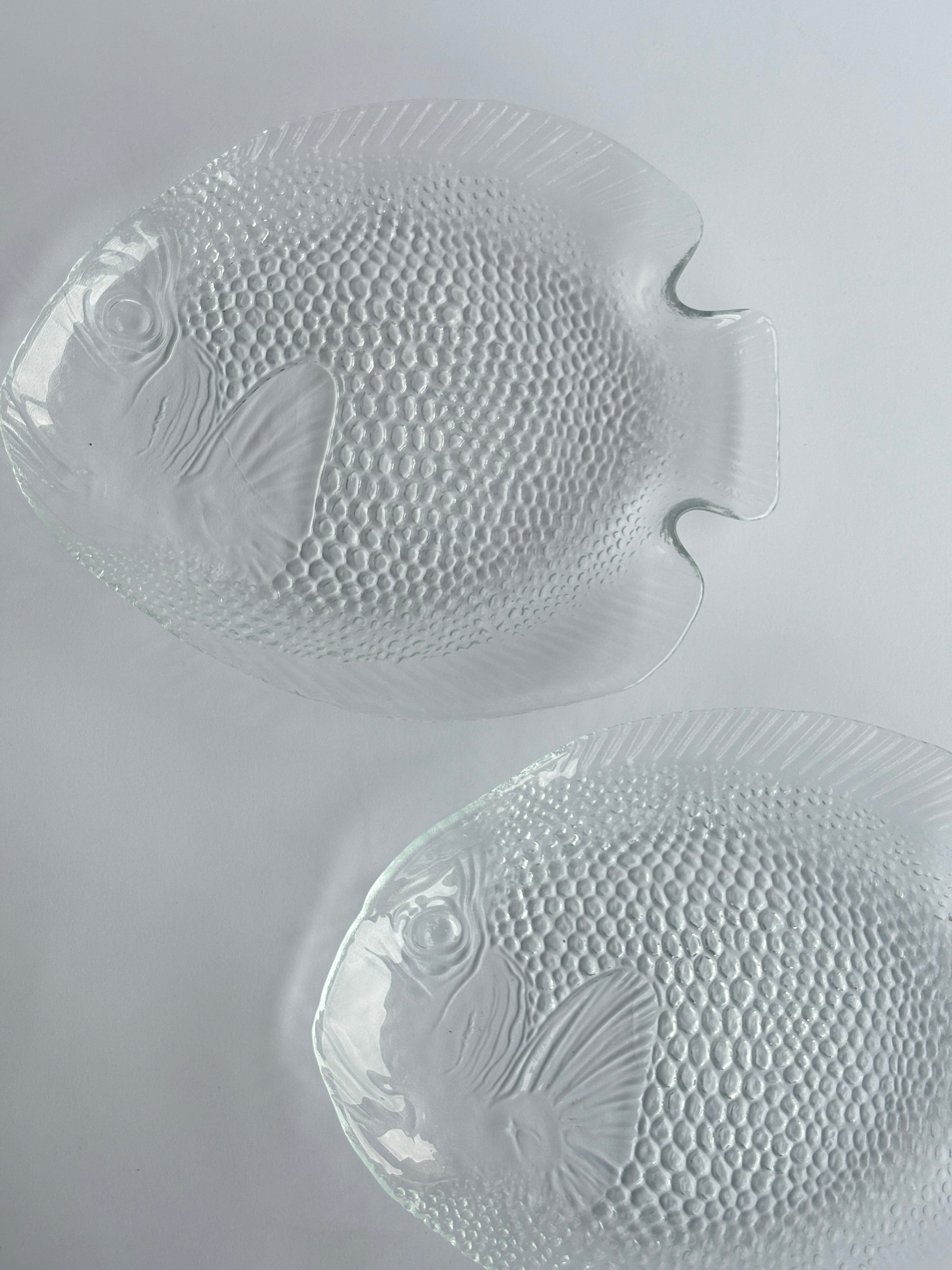 Iconic fish plates from Arcoroc France, dating back to the 1970s. Medium-sized (26 × 20 cm), perfect for serving seafood in style. Also available in small and large sizes (see last photo).