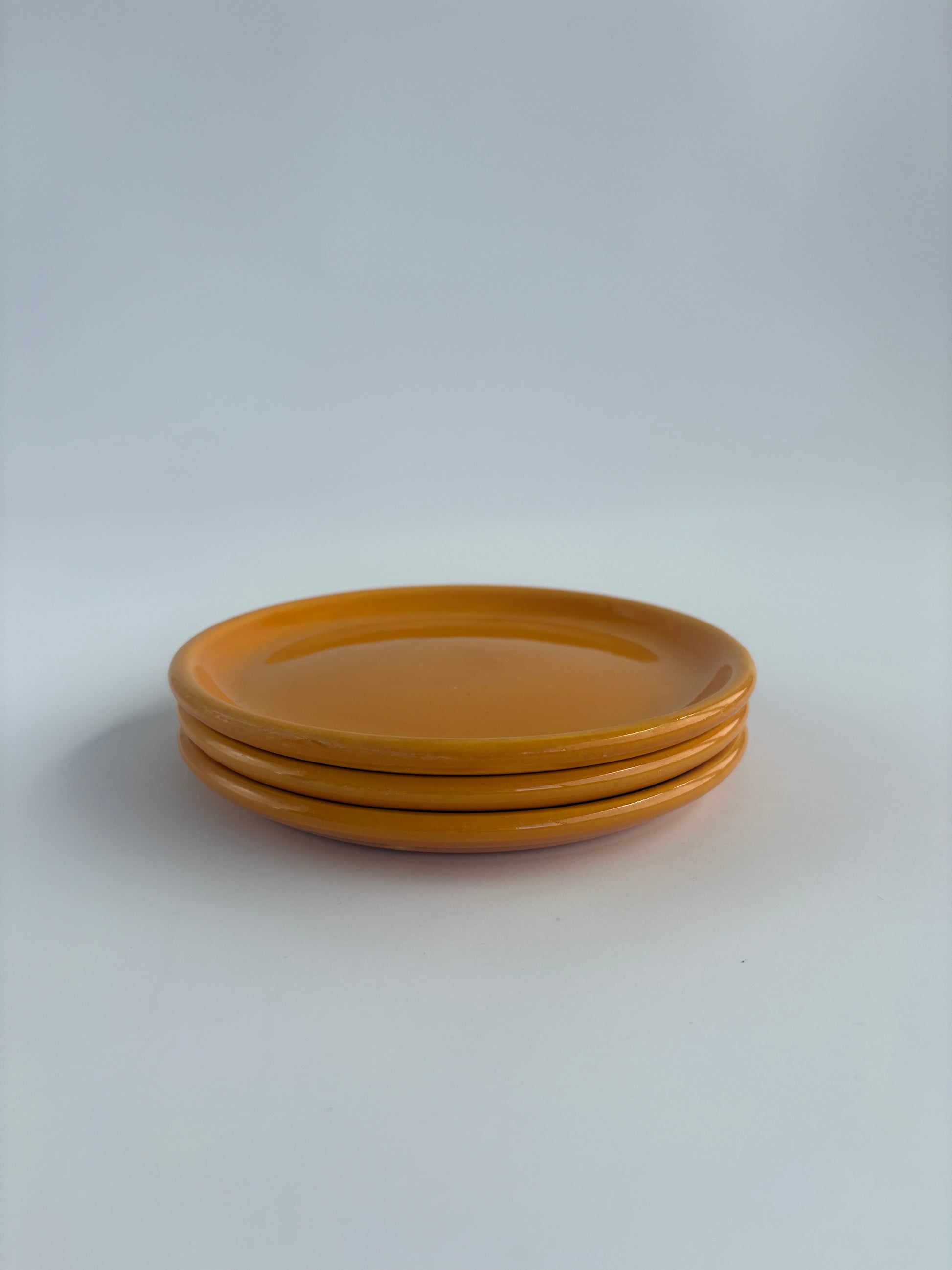Set of 3 small plates in a vibrant orange color from Salins France. A cheerful pop of color for your table — perfect for small bites, desserts, or simply as a fun accent. Ø17 cm.