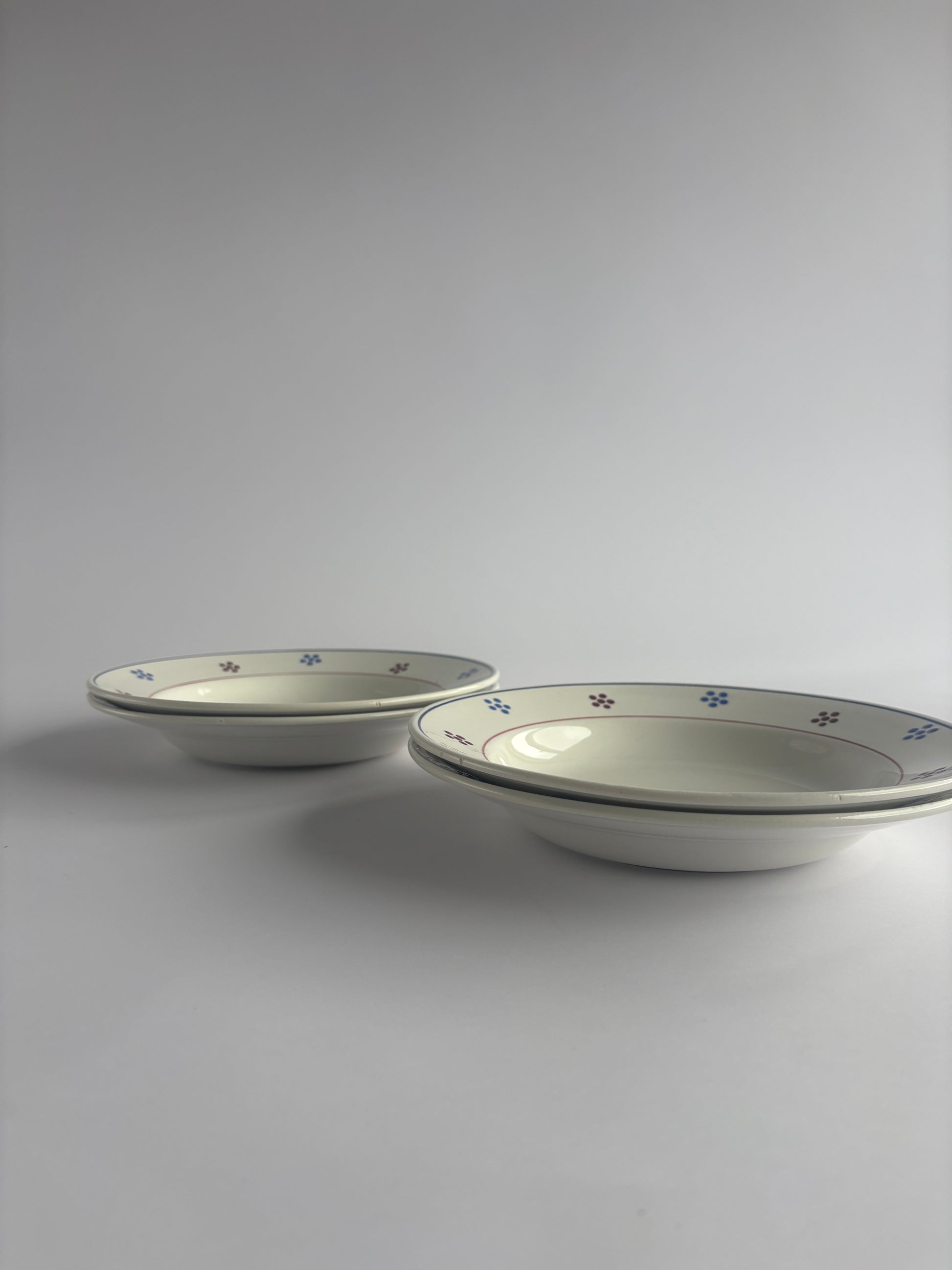 Charming deep plates by St. Amand, decorated with delicate red and blue flowers. Playful and sweet.