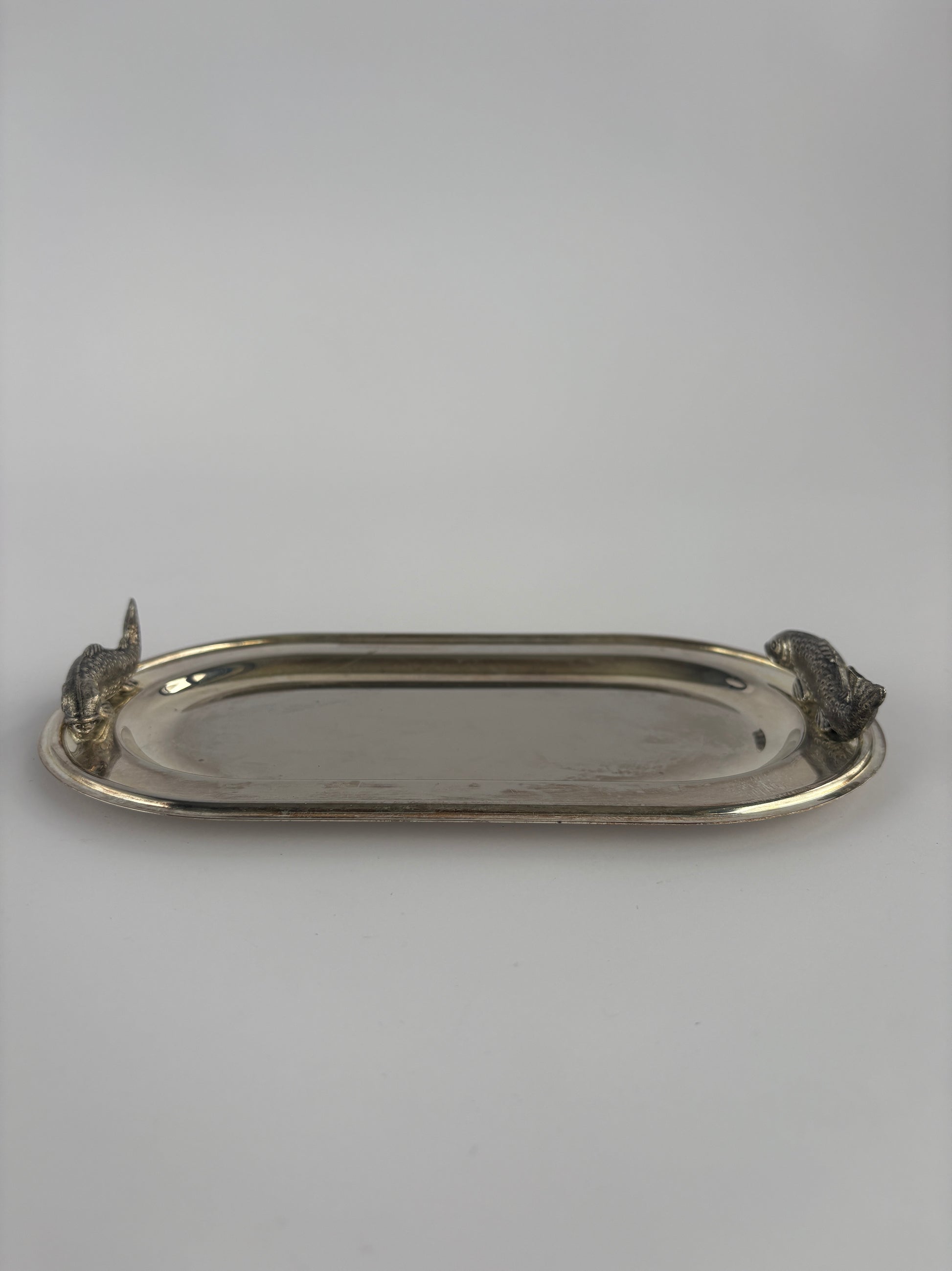 Add a playful touch to your table with this small silver serving tray, decorated with two charming fishes. Perfect for serving small bites or snacks, because tableware doesn’t have to be serious. Measures 22 × 12 cm.